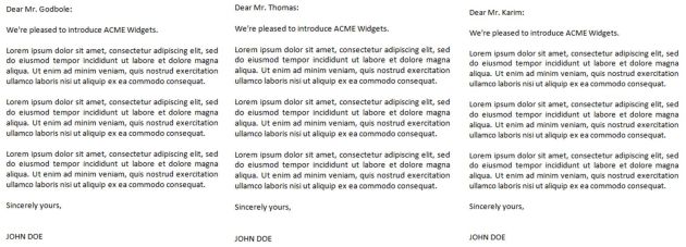 While the WordStar mail merge feature was powerful enough to personalize other elements of the letter, it was quite painful to use, so most people stopped at personalizing the name of the recipient.