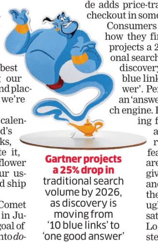 Gartner projects a 25% drop in traditional search volume by 2026, as discovery is moving from “10 blue links to one good answer”. Well, people have been wishing for discovery to move from links to answers for 24 years. Wish and fulfillment are two different things. Let’s see how this prediction pans out.