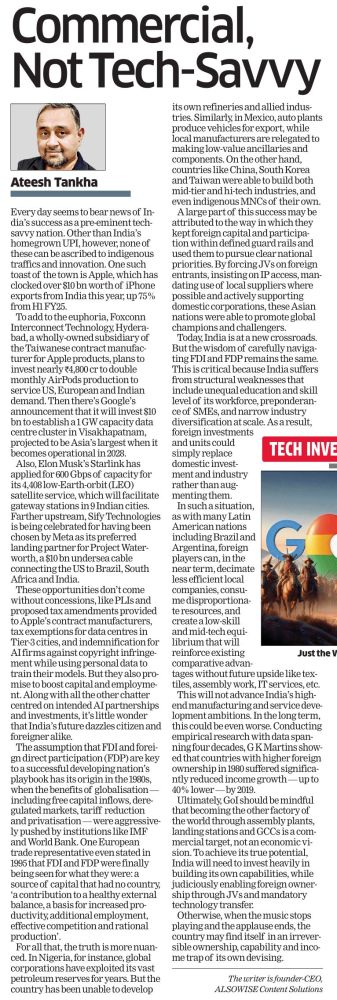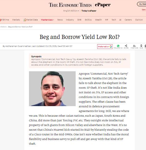 In his op-ed entitled Commercial, Not Tech-Savvy in Economic Times, Ateesh Tankha proposes the Chinese R&D playbook for India.