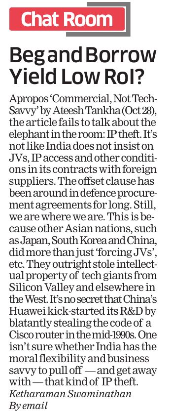 I doubt if India has the moral flexibility and business savvy to pull off – and get away with – the kind of IP theft as its Asian neighbors, especially China, have done.