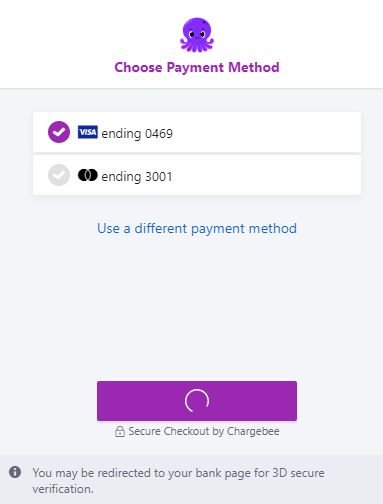 When I click this button, I’m taken to the following page on the merchant’s website, where I see my various credit cards on file.