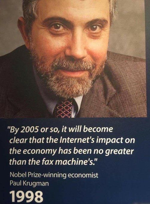 • Internet: An Economics Nobel Laureate once likened the Internet to fax machine and predicted that it wouldn’t have a TAM of more than 100 million. Enough said.
